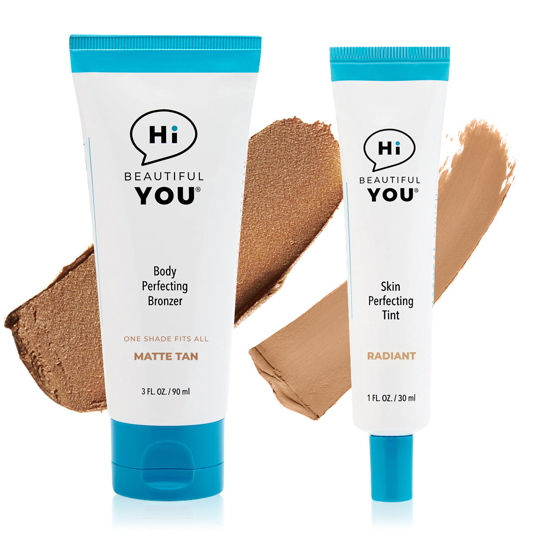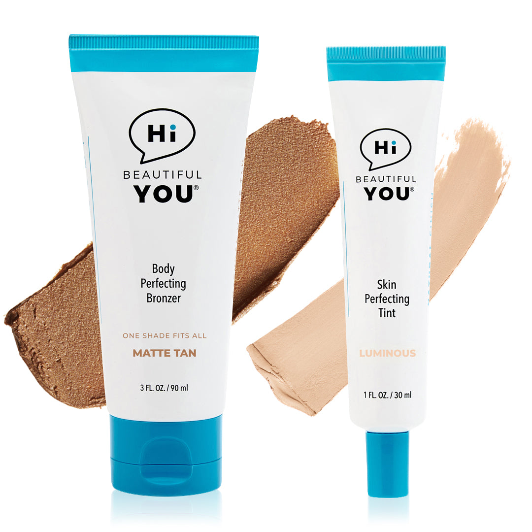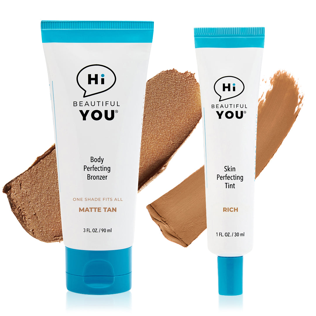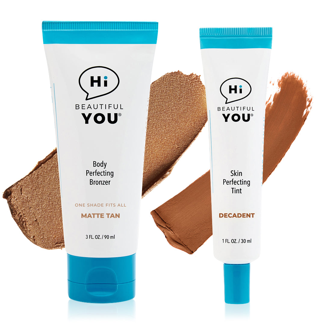BE YOU BODY | Body Perfecting Bronzer has our Smart Tint Technology™ that delivers a "one-shade-fits-all" solution that adapts to various skin tones. It’s the ultimate quick-fix body makeup and a flawless alternative to even the best self-tanners. This all-in-one wash off body bronzer glides on effortlessly to instantly melt into the skin to improve skin tone — reduces redness, bruises, varicose veins, scars, stretch marks, and dry rough skin — leaving the most natural-looking fake tan ever.